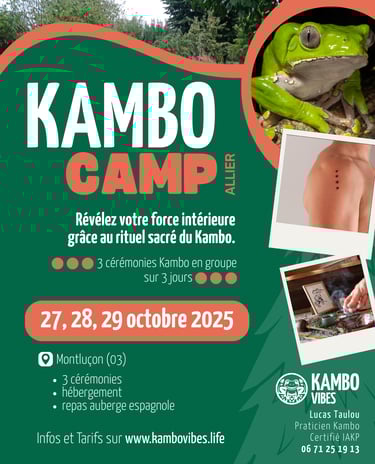 Le Kambo et son utilisation ne sont pas destinés à diagnostiquer, traiter, soigner ou prévenir quelque maladie que ce soit. Pour cela, veuillez toujours consulter votre médecin. Le rituel du kambo que je propose n'a strictement aucune visée thérapeutique. Lorsque le Kambo est désigné comme médecine, il ne s'agit jamais de médecine occidentale ou du système médical français, mais uniquement d'une médecine traditionnelle tribale utilisée par les indigènes dans ce contexte. Je vous propose de vous fournir le Kambo en toute sécurité en tant que praticien formé et qualifié de l'IAKP, uniquement dans le but de vous faire vivre le rituel traditionnel indigène. Le Kambo ne doit pas être approché à la légère, ni dans l'ignorance ou le mépris des contre-indications et de votre propre sécurité. Veuillez ne pas négliger les diagnostics cliniques, la pratique médicale conventionnelle, les tests, les évaluations et les procédures qui vous ont été éventuellement recommandés par votre médecin.